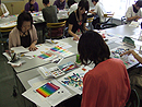 同系色、面積比、カラーリンケージなどの実践的配色テクニックを実習